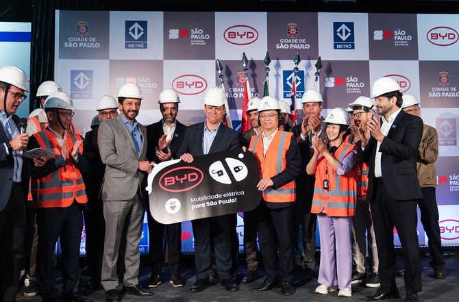 比亞迪巴西圣保羅17號線云軌項目測試完成,并交付首臺22米電動大巴
