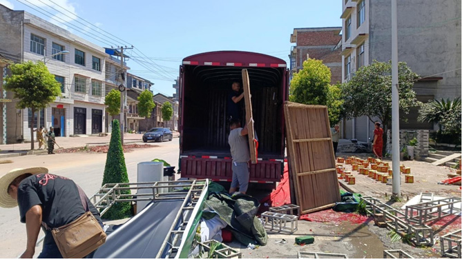 搭建需要用到的設(shè)備和道具比較多,一般的車裝不下,石老板一直選擇用輕卡來拉設(shè)備,市場上的幾大主流品牌的車都買過。都用過一遍之后,他覺得還是帥鈴比較趁手,今年4月份,他購買了現(xiàn)在這輛帥鈴Q3雙排車型,倉柵上裝,還特地選了紅色車漆,寓意生意紅紅火火。
