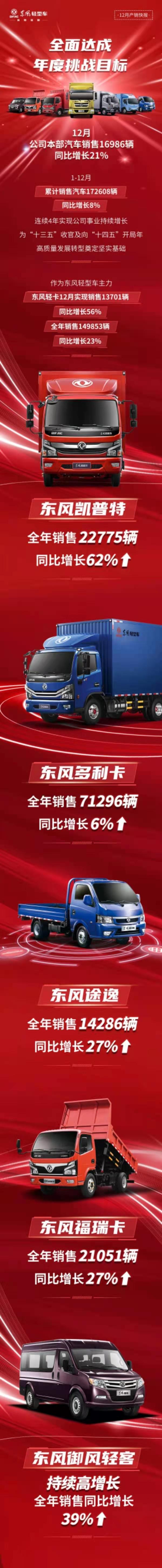 東風(fēng)汽車股份總經(jīng)理李軍智表示,2021年是“十四五”開局之年,機遇與挑戰(zhàn)并存。公司將全面布局輕卡、輕客和新能源汽車事業(yè),陸續(xù)投放戰(zhàn)略性新品凱普特星云、全力投放B19國六商品、小輕卡途逸寬體新品以及V9輕客、凱普特e星、EV輕卡物流車等,打造明星車型、打造高收益車型,圍繞“客戶體驗領(lǐng)先”的品牌使命,不斷提升產(chǎn)品力、體系力和品牌力,力爭打贏開局之戰(zhàn)。