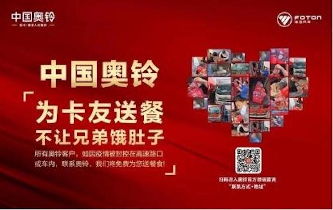 最近,各地疫情頻發(fā),奧鈴踐行企業(yè)社會責(zé)任,多次捐助物資、提供車輛保障。3月28日,中國奧鈴山東聊城經(jīng)銷商組織運(yùn)送生活防疫物品前往各地村委會;4月2日,海南政府調(diào)撥物資緊急馳援上海,中國奧鈴為順豐運(yùn)送車隊(duì)提供車輛護(hù)衛(wèi)及全程免費(fèi)車輛服務(wù)保障。此外,中國奧鈴還發(fā)起了“以愛戰(zhàn)疫”行動倡議書,向因疫情被封控在高速路口或車內(nèi)的奧鈴卡友免費(fèi)送出數(shù)百份“愛心餐”,并呼吁各界社會優(yōu)秀力量關(guān)注卡友,幫助卡友,同心抗疫,打通物流運(yùn)輸阻力,助力疫情防控地區(qū)物資保障。