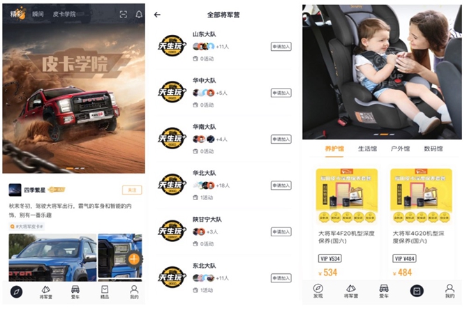 皮卡生活APP圍繞“皮卡學院”等重點板塊精心搭建,通過酷樂潮玩、改裝文化、登山涉水、博學多才等細分內容,將皮卡車主、KOL的多彩車生活一網包羅。其中“將軍營”、“愛車”、“精品”等矩陣模塊,將以強大的功能、多元的玩法、鏈動線上線下的體驗以及超多的優享鉅惠等,解鎖皮卡圈層新社交,讓皮卡不止成為一個交通工具,使其成為匯聚皮卡愛好者的紐帶,為廣大車主營造豐富生活、愛好、事業的全新生態圈,在這里遇見皮卡生活的萬千形態,傳遞對生活的熱愛和正向價值,讓皮卡文化真正的流行起來!