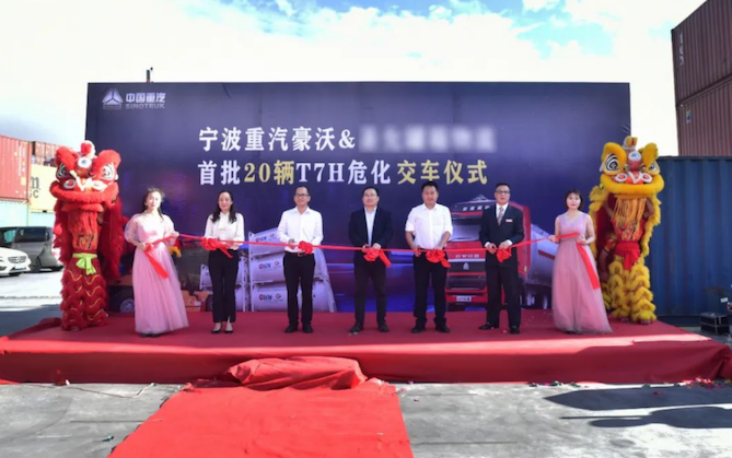 近日,20輛豪沃T7H危化品牽引車VIP大客戶交付儀式在寧波盛大舉行,取得圓滿成功。