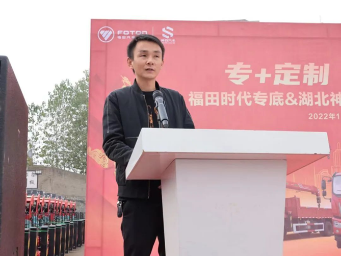 會(huì)議開始,福田時(shí)代專底營(yíng)銷公司隨州中心總監(jiān)孫海濱進(jìn)行致辭。他表示,福田汽車作為商用車行業(yè)的第一品牌,連續(xù)17年蟬聯(lián)商用車銷量第一。福田時(shí)代專底作為事業(yè)部乃至集團(tuán)重點(diǎn)推進(jìn)品牌,向內(nèi)依托福田汽車雄厚實(shí)力,以專業(yè)科技實(shí)力賦能專底產(chǎn)品智慧運(yùn)營(yíng),并根據(jù)上裝要求進(jìn)行專業(yè)底盤設(shè)計(jì),全面滿足全場(chǎng)景,多元化使用。向外福田時(shí)代專底將鏈合改裝企業(yè)資源,為專用車用戶提供全方位一站式服務(wù)。此次與湖北神百集團(tuán)的強(qiáng)強(qiáng)聯(lián)合,更是在建立深入合作機(jī)制基礎(chǔ)上,充分發(fā)揮各自優(yōu)勢(shì),合力共贏,共同推動(dòng)雙方發(fā)展邁上新臺(tái)階。