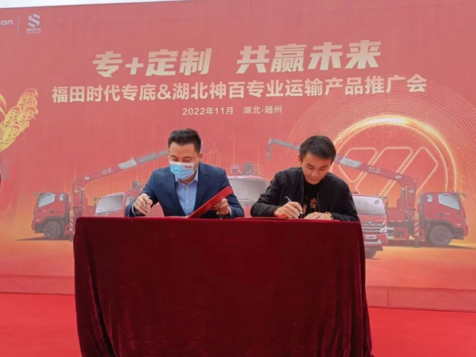 會(huì)議最后舉行了隆重的簽約儀式,福田時(shí)代專底與湖北神百集團(tuán)簽訂意向訂單隨車吊底盤300臺(tái)。本次戰(zhàn)略合作的成功簽約,是雙方進(jìn)一步凝聚共識(shí)、深化合作的體現(xiàn),雙方將以此次簽約為新的起點(diǎn),持續(xù)賦能,相互融合,開啟合作新篇章,打造共贏新生態(tài)。