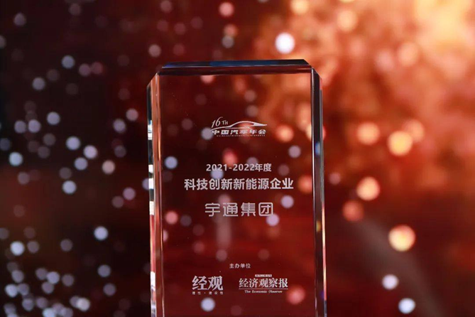 2022年12月23日,由《經(jīng)濟(jì)觀察報(bào)》主辦的“韌性筑底 蓄力向新 2022第十六屆中國(guó)汽車(chē)年會(huì)”上,宇通集團(tuán)榮獲“2022年度科技創(chuàng)新新能源企業(yè)獎(jiǎng)”。