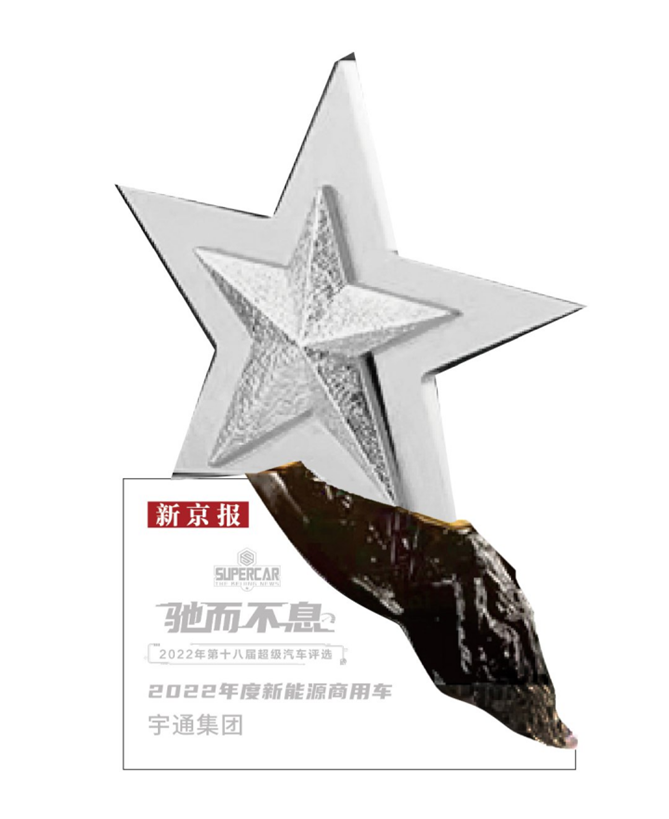 2023年1月11日,由《新京報(bào)》主辦的“馳而不息”2022年第十八屆超級(jí)汽車(chē)評(píng)選揭曉獲獎(jiǎng)名單,宇通集團(tuán)榮獲“2022年度新能源商用車(chē)獎(jiǎng)”。