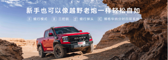 32°接近角,27°離去角,255mm離地間隙,285全地形越野胎和7種不同模式的全地形管理系統(tǒng),并且高配版本還有8檔阻尼可調(diào)氮減,更使敢探者具備全地域的適應(yīng)能力。而敢探者還擁有蠕行模式、蠕行掉頭、博格華納分時(shí)四驅(qū)系統(tǒng)等眾多越野利器,為用戶帶來(lái)更輕松、更暢快的越野樂(lè)趣。行業(yè)首搭的無(wú)人機(jī)伴飛技術(shù),不僅能夠更好掌握前方未知路況,同時(shí)還能以俯瞰的視角將沿途美景盡收眼底。
