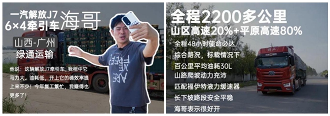 說起拉綠通的海哥,很多卡友可能都認識,他不僅是一位卡車司機,還是擁有超30萬粉絲的“跳舞博主”。一邊拉綠通,一邊做視頻,就這樣,沉浸在自己熱愛的生活里。海哥從事綠通運輸已經有超過10年的時間,經驗相當豐富。他說:“跑綠通時效性太重要了,只有保證時效,才能掙到錢。”2022年6月,海哥給自己換了一臺解放J7牽引車,同行都不解,運費不高還敢買高端車?如今,這臺車已經運營近17萬公里。海哥用實際數據說話,證明了他的英明之選!