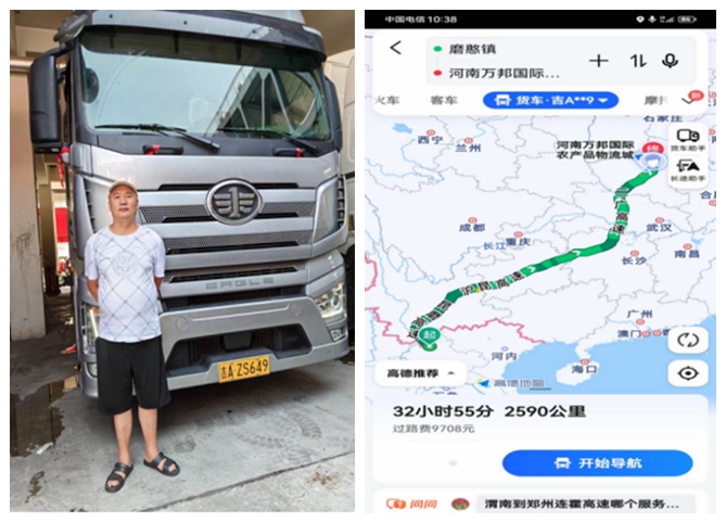他說:“這輛解放J7牽引車搭載的560馬力發動機,動力更強勁了,12擋AMT變速箱,比之前的手動擋開起來更舒服,效率自然就提上來了,以前需要三天才能送達的貨物,現在兩天就能到目的地。還有最重要的油耗問題,從山西到廣州一趟2200多公里,有高速也有山路,百公里平均油耗30L,相當給力!目前這車已經跑17萬公里了,一點毛病也沒出過,機箱橋都是長換油、長保養,我一年保養一次就夠用,特別省心!有了它,我賺的錢也多了,還能省出時間做自己喜歡的事,真的是特別滿意。”
