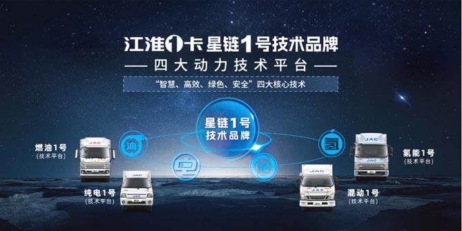 “星鏈”是江淮1卡擘畫未來的重要載體,“1號”是江淮1卡始終如一的發展目標。“星鏈1號”技術品牌,是中國商用車行業首個全場景高智技術品牌,由“燃油、混動、純電、氫能”四大技術平臺組成,具有“智慧、高效、綠色、安全”四大核心技術,正應日益蓬勃卻也亟待升級的輕型物流運輸行業而生,向新能源化、智能化全面進階。