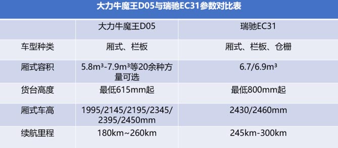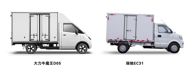 今天,我們就拿物流車新秀——剛剛上市就備受用戶關(guān)注的大力牛魔王D05,和經(jīng)典車型——瑞馳EC31進行全面對比,讓大家看看,如何才能選到又安全、又能賺、又舒適的城配物流車!