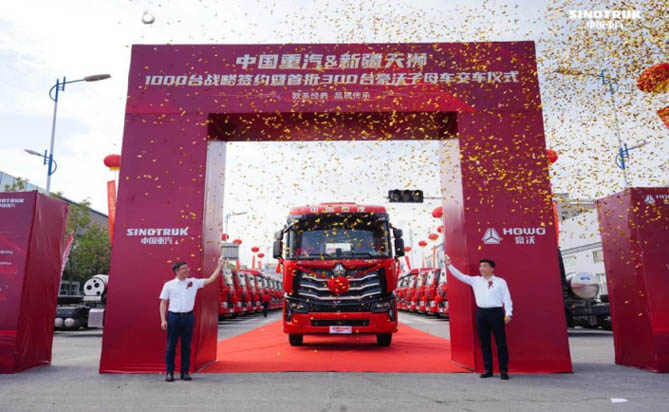 在遼闊壯麗的新疆烏魯木齊,一場意義非凡的交車慶典璀璨啟幕,標志著中國重汽豪沃重卡與新疆天獅供應鏈管理有限公司合作的新篇章正式開啟。慶典現場,300輛豪沃子母車榮耀交付成為焦點,雙方共同見證了1000輛戰略合作簽約的歷史性時刻。這批專為煤炭運輸量身定制的燃氣重卡,以其卓越的性能和高效的運輸能力,將成為煤炭運輸領域的強勁力量,助力新疆能源產業再攀高峰。