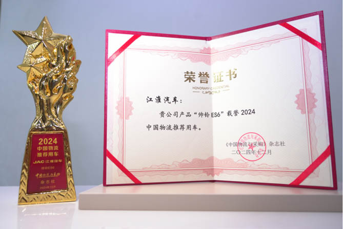 江淮新能源ES6輕卡榮獲“2024中國物流推薦用車”稱號