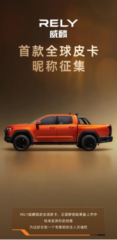 近日,RELY 威麟在其官方小程序開展了 “首款全球皮卡昵稱征集活動”。活動表示:可用擬人形式命名,可酷炫可霸氣可有趣,昵稱簡潔易記、朗朗上口即可。活動上線后獲得網友們踴躍參與,截止目前已經收到100+個昵稱。后續,這些昵稱將通過篩選、投票環節確定最終優勝名稱。