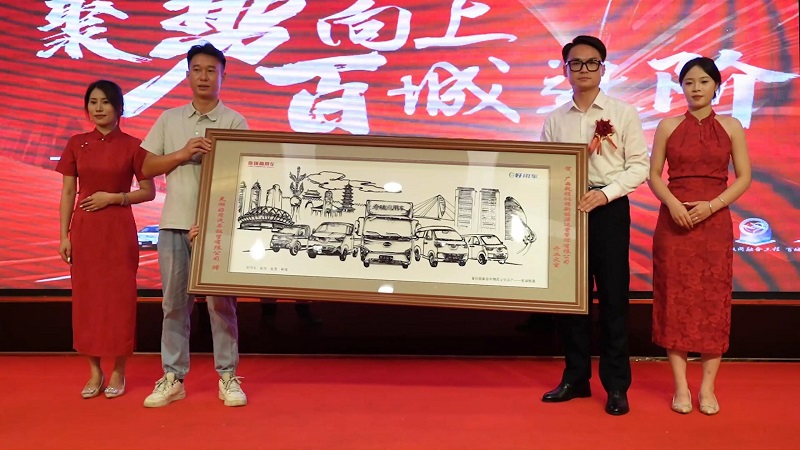 隨后進行的授牌儀式上,好用車總經理助理張慶先生將授權牌匾正式授予廣西乾程總經理楊權先生,這一紙授權,是信任的憑證,更是責任與共贏的開始。好用車南部戰區副總監戴禮軍先生則向廣西乾程業務總監陸梁波先生贈送了獨具寓意的蕪湖鐵畫禮品,象征著雙方合作如鐵畫般歷經錘煉,堅不可摧,歷久彌新。