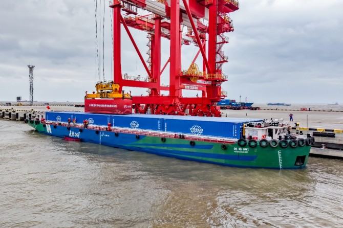 10月20日,全球首艘醇?xì)潆妱?dòng)集散兩用船首航儀式在上海港羅東集裝箱碼頭成功舉辦,“遠(yuǎn)醇001”號(hào)正式首航開啟商業(yè)運(yùn)營(yíng),這不僅是醇?xì)潆妱?dòng)在航運(yùn)應(yīng)用的里程碑事件,更為全球綠色轉(zhuǎn)型提供具有“中國(guó)智慧”的解決方案。上海國(guó)際港務(wù)(集團(tuán))股份有限公司副總裁柳長(zhǎng)滿,業(yè)務(wù)部副總經(jīng)理胡美娟,吉利控股集團(tuán)高級(jí)副總裁王召興,遠(yuǎn)程新能源商用車集團(tuán)CEO范現(xiàn)軍等出席活動(dòng)。