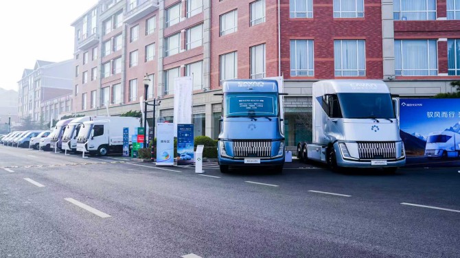 尤其是福田卡文重卡液氫車型,是行業(yè)首個(gè)將航空航天領(lǐng)域液氫技術(shù),突破性地應(yīng)用于量產(chǎn)化的新能源重卡。通過62項(xiàng)新材料、新結(jié)構(gòu)、新工藝革新,整車減重30%;自研300kW燃料電池采用高耐久膜電極與長壽命電堆技術(shù),B10壽命可達(dá)160萬公里,常用工況效率≥58%,效率優(yōu)于行業(yè)水平9個(gè)百分點(diǎn)。
