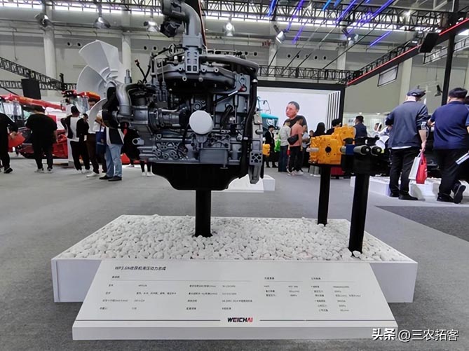 本次展會中亮相的全系列拖拉機動力總成,被濰柴的研發工程師賦予了更強勁的動力和更可靠的性能——燃油系統均采用了電控高壓共軌系統,因此噴射壓力高、低速扭矩大、霧化好、經濟性更優;電控系統均為自主ECU控制,功能針對農機作業工況開發,適應性更強;進氣系統標配了濰柴自主研發三級93沙塵濾(干式),過濾更高效,適應惡劣作業環境。進氣更充分,燃燒更高效……