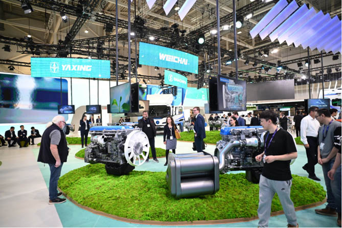 展會(huì)現(xiàn)場(chǎng),濰柴帶來(lái)了滿足歐Ⅶ排放標(biāo)準(zhǔn)的53%高熱效率柴油機(jī)、WP14T混動(dòng)總成、WP15靈活燃料內(nèi)燃機(jī)平臺(tái)、300kW氫燃料電池動(dòng)力系統(tǒng)等覆蓋多技術(shù)路線的硬核產(chǎn)品,濰柴在傳統(tǒng)動(dòng)力和新能源動(dòng)力領(lǐng)域的硬核實(shí)力驚艷全球。