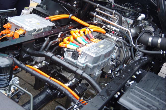 串并聯(lián)式混動系統(tǒng)在乘用車領(lǐng)域發(fā)展較早,國內(nèi)早在2014年便有串并聯(lián)式車型量產(chǎn)。發(fā)展至今,串并聯(lián)式混動系統(tǒng)的工作效率及可靠性早已經(jīng)過市場驗證。帥鈴HS6的P1+P3串并聯(lián)式混動由發(fā)動機(jī)曲軸輸出端P1電機(jī)+變速箱輸出軸P3電機(jī)組成,可以實現(xiàn)串聯(lián)混動、并聯(lián)混動等多種驅(qū)動模式。在不同運輸工況下,帥鈴HS6的混動系統(tǒng)可充分發(fā)揮電機(jī)和發(fā)動機(jī)的優(yōu)勢。