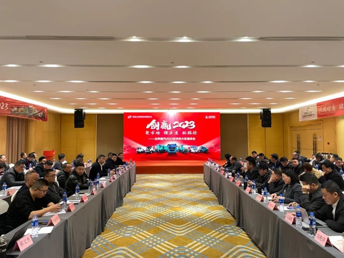 北奔重汽副總經理呂利萍,營銷公司總經理董輝強及相關部門領導,銀行和金融機構、新能源產業鏈代表、80余家經銷商、服務商、備件商、核心供應商及改裝企業代表參加了會議。會上分享了北奔重汽與各位合作伙伴在過去共同努力所獲得的碩果,同步開啟北奔重汽2023年的跨越與征程。