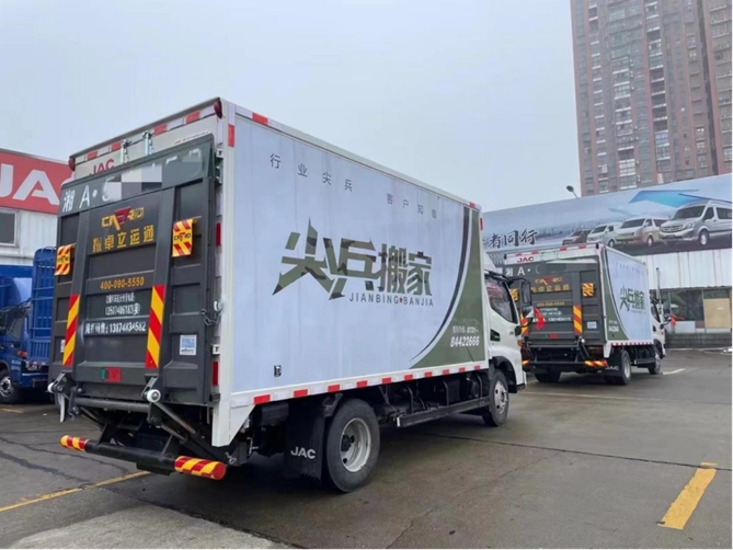 為什么要采購不同類型的運輸車?因為搬家運輸場景多樣,專車專用效率才更高。小區地庫和架設的電線往往對整車高度有限制,一般在2米左右,但是一些地庫內消防設施的離地高度比地庫限高還要低。因此,市內搬家運輸時,袁總會根據小區情況選用駿鈴地庫車。駿鈴廂車地臺低,裝有電動尾板,裝卸貨比較方便,用起來得心應手,深得袁總喜愛。袁總介紹說搬家業務消耗在路上的運輸時間其實并不會太長,反而是家具裝卸搬運環節最耗時間,地臺低、有電動尾板,大件家具搬運方便,工人搬運時也能更省力,運輸效率就是這樣提高的。
