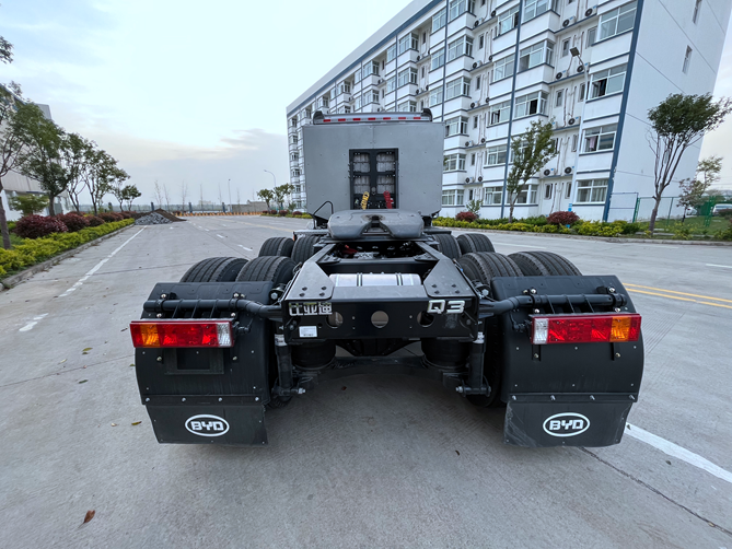 作為新能源重卡產品的“中樞系統(tǒng)”,比亞迪同時掌握電池、電機、電控“三電”核心技術及配套充電設施,將各種完全自主“黑科技”都應用到比亞迪Q3純電動牽引車身上。