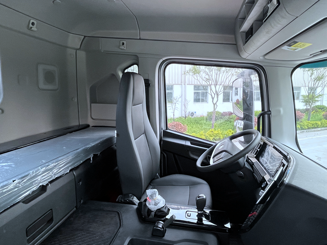 與此同時,比亞迪Q3純電動牽引車采用全新設計的駕駛室,配備四點懸浮式螺旋彈簧懸置,有效減少車輛行駛中的顛簸、震動和沖擊性,駕駛體驗更佳。主駕駛的座椅采用了符合人體工程學的仿皮座椅,附帶氣囊減震,并且可以選裝十二項調節(jié)功能,可以大大地緩解駕駛疲勞。另外,考慮到這款車定位中、短途固定距離或者園區(qū)內運輸的純電動牽引車,所以在駕駛室僅搭載了一個單人的臥鋪,可以讓用戶進行簡單的休息。