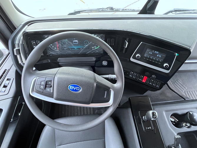 進入駕駛室,可以看到比亞迪Q3純電動牽引車的駕駛室采用了環(huán)繞式儀表臺,多功能方向盤抓握感非常貼合手掌,儀表盤采用了機械指針加8寸液晶顯示屏的設計,顯示信息簡潔明了,能讓駕駛員及時掌握車輛動態(tài)信息。而且,中控臺功能按鍵觸手可及,充分詮釋了“以駕駛者為中心”。另外,這款車還能選裝PAD系統(tǒng),10.1英寸的高清大屏等多種功能。