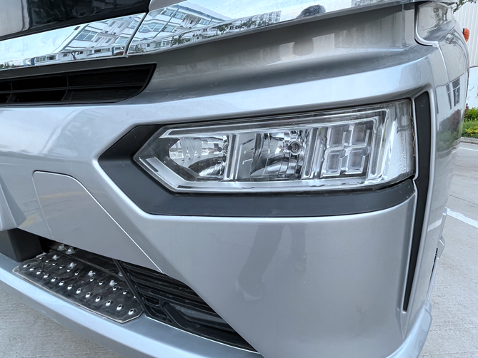 同時,其采用超強輕質結構,集成化組件,整車重量降低2%~3%,整車能耗降低1%~2%。另外,黑色前面板的下方鑲嵌了一條橫貫整個車頭的鍍鉻裝飾條,為整車外觀添加了一抹亮色。駕駛室側身的腰線使用了上揚的線條,讓整車的造型更加犀利。