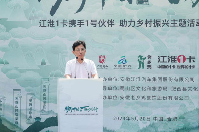 安徽省合肥市蜀山區文化和旅游局局長李正珊也對江汽集團成立60周年表示了祝賀,并表示文旅產業與鄉村振興是相輔相成的,“物產中國 百萬同行”活動正是連接兩者的橋梁,通過高效的物流支持,將鄉村的特色物產和文旅資源送往全國各地。未來,合肥文旅將深化與江淮1卡的合作,共同推動文旅產業和鄉村振興的發展。