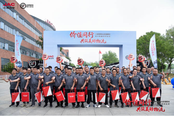 4月22日,“價值同行 共筑美好物流”江淮商用車&安徽順豐批量輕卡交付儀式在合肥舉行。近百輛江淮1卡駿鈴V5正式交付安徽順豐,標志著雙方強強聯合,邁向全價值鏈深度協同。