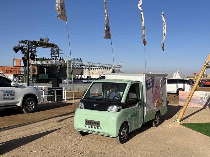 小車的大用處。在阿拉善主會場的核心區域,原本是城配物流工具的北汽雷馳新能源MINI卡在這里展示了自己的“隱藏技能”,只需要簡單改裝,新能源MINI卡就搖身一變,成為了沙漠里的移動咖啡店,為來到這里感受越野文化的人們送上香氣四溢的咖啡,還能作為移動啤酒屋、移動書店、移動美食車、移動便利店等,靈活輕巧,移動方便,非常適合用作低成本創富神器,它的出現,也讓更多的自由職業者看到了一種新生活方式的可能性。