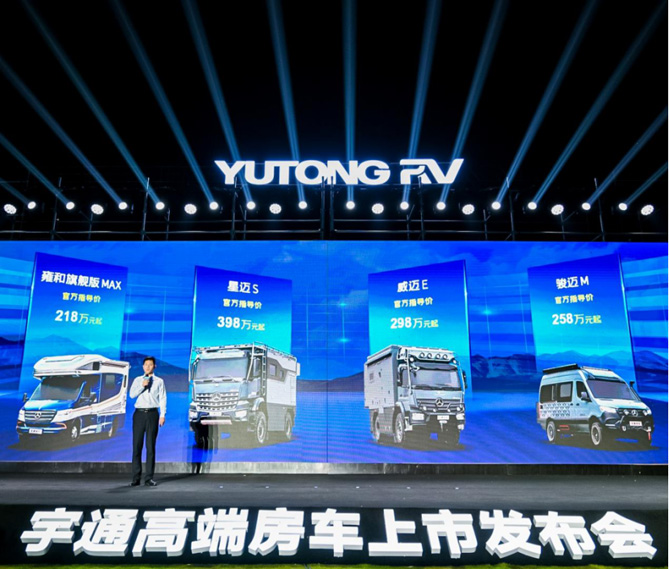 “宇”您一起,奔馳天下。8月10日晚,“心無界,行無疆”宇通高端房車上市發布會在鄭州水木芳華房車營地舉行。會上,宇通房車與奔馳強強聯合,推出了星邁S、威邁E、駿邁M、雍和旗艦版MAX四款高端房車,致力于為用戶創造多場景的豪華越野旅居體驗。其中,奔馳Atego底盤是國內市場首發,并首次應用于宇通威邁E。