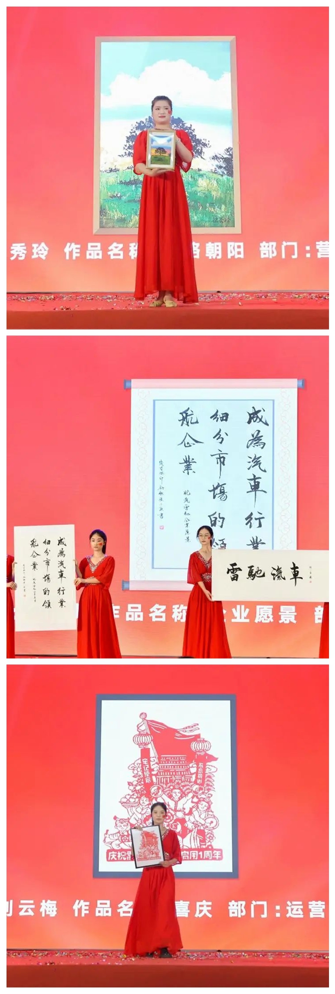 頒獎儀式 為慶祝中華人民共和國成立74周年暨北汽雷馳新能源商用車總部基地啟用一周年,廣大員工紛紛通過書法、繪畫、剪紙、短視頻等多種方式祝福祖國,祝愿北汽雷馳。