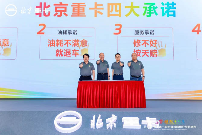 第三,四年保修再加“四大承諾”,保障用車無憂。北京重卡此前發布的服務政策包括:三大總成核心零部件最長10年質保;公路車贈送2年延保,相當于同類車型保4年等等。此次活動,北京重卡發布“質量不滿意就退車”“油耗不滿意就退車”“修不好按天賠”“二手車保值回購”四大承諾。產品上市一周年以來,北京重卡形成了1000多家服務網絡,并且同時數字化系統實現精準服務,保障服務體系更為完善。