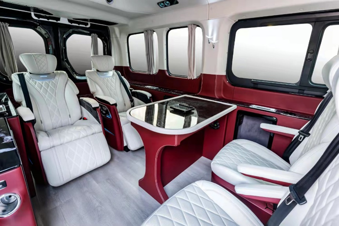 讓旅途更具品質(zhì)感,V90墨采用國(guó)內(nèi)寬體輕客中首款原廠開發(fā)的電動(dòng)側(cè)移門,車內(nèi)高度近1.8m,進(jìn)入車內(nèi)用戶不用彎腰也可行動(dòng)自如。不止于此,V90墨搭載VIP獨(dú)立座椅,支持座椅加熱及通風(fēng),靠背、腿托還可電動(dòng)調(diào)節(jié),輔以空氣懸架,為用戶提供媲美“頭等艙”的舒適享受。