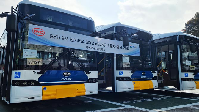 10月31日,比亞迪韓國分公司正式在韓國市場推出了BYD eBus9純電動大巴車型,并在位于京畿道龍仁的韓非運輸場站舉行了紀念該車型的1號車輛交付儀式。比亞迪韓國分公司代表、比亞迪商用車的官方進口商GS Global負責人及韓非運輸負責人出席了本次活動。