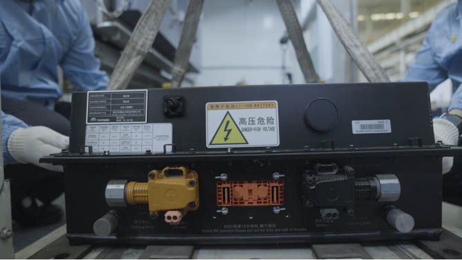 為確保電池PACK在長達(dá)15年的生命周期內(nèi)結(jié)構(gòu)穩(wěn)固,宇通基于實車工況路譜采集數(shù)據(jù),提取客車電池系統(tǒng)振動及沖擊工況特征,研究電芯膨脹自適應(yīng)模組、動態(tài)緩沖電連接、高強(qiáng)度箱體等技術(shù),開發(fā)高模態(tài)、耐振動、耐沖擊的電池PACK,并通過了嚴(yán)苛的結(jié)構(gòu)可靠性驗證。