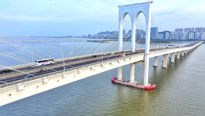 (宇通新能源客車駛過澳門大橋)