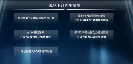 在深度感受產品魅力后,活動迎來又一個小高潮,專為現場下訂用戶量身定制的專屬購車權益驚喜揭曉——①贈送至高7000元首年免息方案;②原3年6萬公里整車質保升級為5年12萬公里整車質保;③由1次基礎保養升級為3萬公里內免費保養;④原3年10萬公里動力總成質保升級為動力總成終生延保;⑤贈送價值2000元越野配置,多重福利加持,以滿滿誠意掀起訂購熱情,眾多越野愛好者紛紛抓住機會鎖定心儀座駕,短短數小時內已有多位用戶下單,足見歐霸·山海硬核產品力與超值權益的吸引力!