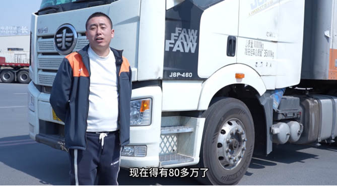 魏師傅介紹,他現(xiàn)在駕駛的解放J6P裝有康邁免維護輪端?!肮窘o我配的這輛車,我已經(jīng)開了80萬公里,輪端都是免維護、免保養(yǎng)的那種?!蔽簬煾档哪樕涎笠缰Γ瑸樽约旱能嚺鋫溆懈咂焚|(zhì)配置而感到高興。