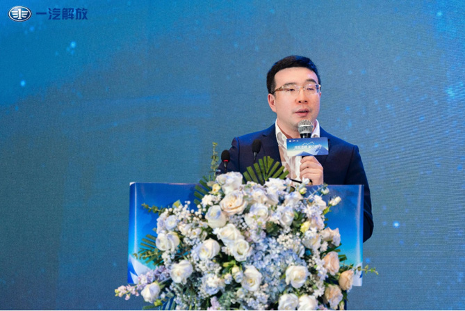 (一汽解放營銷總部副部長,銷售公司副總經理 張立國發布“暖心護航計劃2.0”照片)