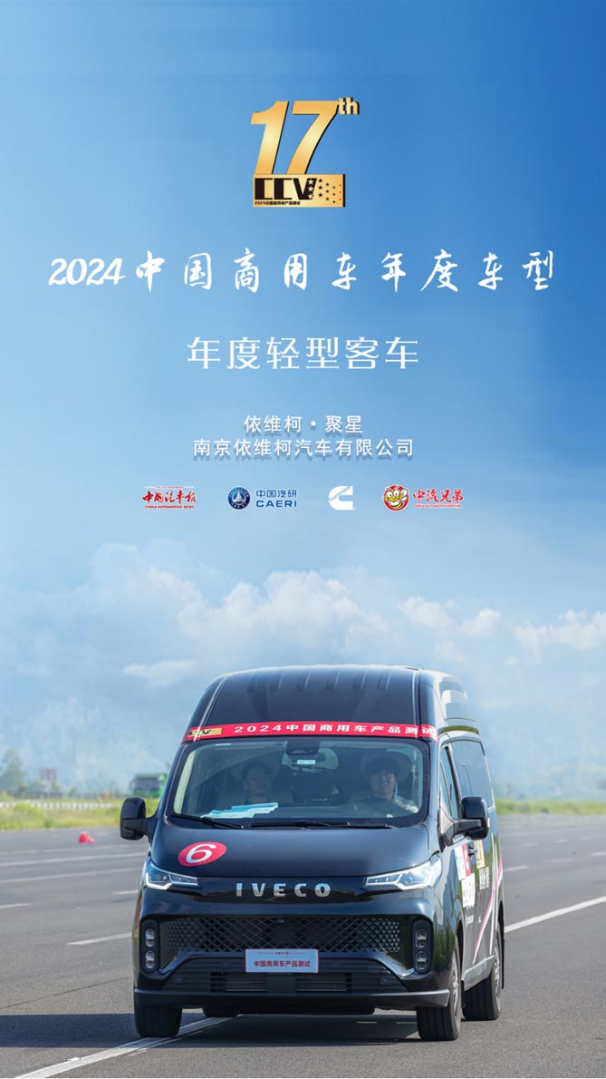 12月1日,由《中國汽車報》社有限公司主辦的2024中國商用車年度車型盛典在北京隆重舉行。經(jīng)過嚴(yán)苛的線下測評、權(quán)威專家評議等綜合考量和選拔,擁有卓越表現(xiàn)的依維柯聚星脫穎而出,摘得“年度車型”稱號,榮膺“年度輕型客車”榮譽(yù)!