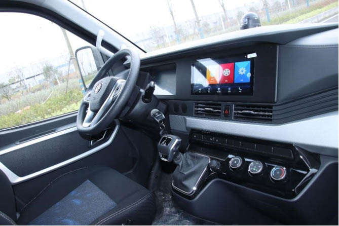 東風御風V9E的儀表和中控采用“雙聯屏”設計——12英寸全液晶儀表盤,將時速、轉速、電壓、電池續航等信息集成在一起,駕駛員可以很方便地了解到車輛的實時運行狀態;搭配的10.36英寸智慧語音大屏,內嵌MP5、車輛導航、倒車影像等功能,帶給用戶智能便捷的駕乘體驗。