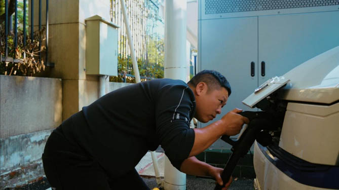 (趁午餐時(shí)間,喻師傅給東風(fēng)御風(fēng)EM27L充電)