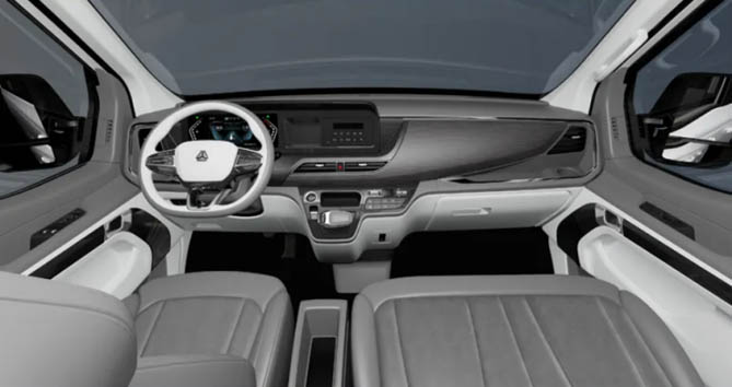 在產品布局上,先鋒官V推出商旅版、多功能版、貨運版、線路版四款車型,并涵蓋短軸、中軸、低頂、中頂不同車身尺寸。搭載濰柴WP2H 2.0T柴油發動機和8AT/6MT變速器,最大功率可達115kW,峰值扭矩高達400N·m,動力強勁且燃油經濟性高。其中,商旅版以極具歐式風格的超凡外觀設計、12.3英寸雙聯屏帶來的智能用車體驗、后多連桿懸架和高級仿生座椅帶來的舒適駕乘體驗以及全方位領先同級的超靜音性能,樹立高端輕客典范。