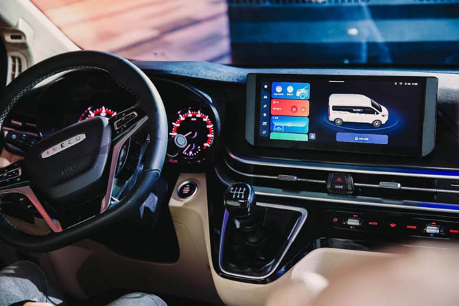 依維柯聚星,風刃型面的造型,在陽光的照耀下宛如春日里的一抹流光。穿梭于鄉間小道時,它的身影與搖曳的油菜花田相映成趣;停駐在山野之間時,全景側窗將遠山含翠的景致溫柔框起——隨手一拍即是大片;細雨朦朧中,水滴沿著車身曲線滑落,仿佛大自然在為這件移動藝術品題寫晶瑩的詩行。