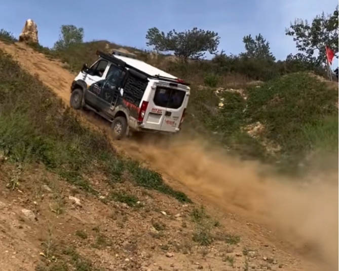 反觀依維柯歐霸?山海、歐霸·雷霆,強大的動力輸出,為車輛攀爬陡坡提供了堅實保障,穩步向上行駛。在全時四驅三把鎖的作用下,即便部分車輪因砂石松動而附著力降低,其他車輪也能獲得足夠動力,確保車輛持續前進,極大程度避免了溜車打滑。同時,它還有著專業的非承載式越野底盤系統,車子不易變形,為精準操控提供了堅實的基礎。