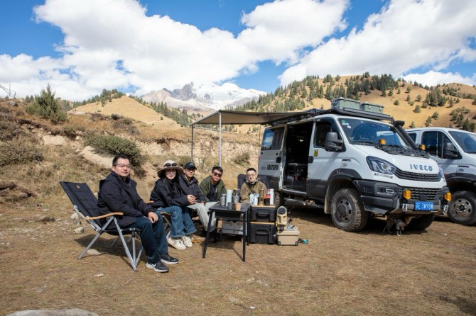 一路前行,歐霸·山海可謂“大殺四方”。全時(shí)四驅(qū)系統(tǒng)與全地形輪胎配合,在勞者龍巴埡口的盤山路上穩(wěn)如磐石;車身穩(wěn)定系統(tǒng)讓車輛始終保持最佳抓地力,即便在濕滑積雪路面亦能保持最佳抓地力。在海拔5100米的扎瓦拉觀景臺,隊(duì)員們紛紛頂著飄雪下車,舉起相機(jī),將雙子峰在云霧中的壯闊全景定格成永恒。此刻,歐霸·山海的硬核性能與川西高原的神秘美景交織,成為征服者最珍貴的勛章。